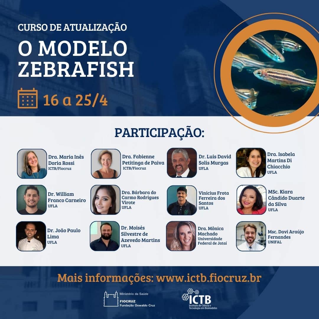 Até 8 de abril, estão abertas as inscrições para o curso de atualização ‘O Modelo Zebrafish’ oferecido pela Coordenação de Ensino do Instituto de Ciência e Tecnologia em Biomodelos (ICTB/Fiocruz). A formação é gratuita e destina-se a técnicos da área, graduandos, além de professores, graduados e pós-graduados, que desejam aprofundar seus conhecimentos sobre a criação e experimentação com o modelo. São 300 vagas disponíveis e as inscrições serão realizadas via Campus Virtual da Fiocruz.